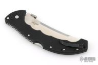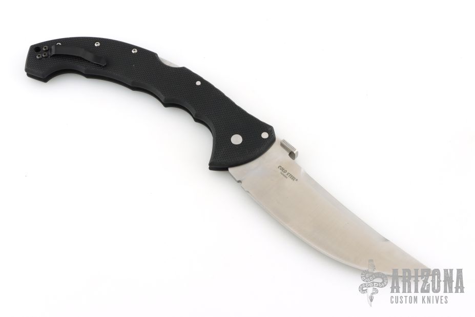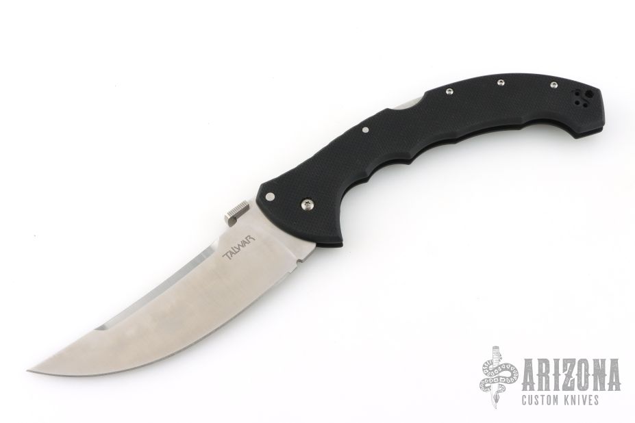 The Talwar 5.5 by Cold Steel was discontinued in 2017. It has a satin finished upswept blade with thumbdisc. The handle has a black G-10 frame and tip up reversible clip. Excellent condition.