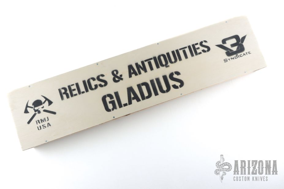 The Gladius, along with its sheath and accessories, comes packaged in a custom crate.