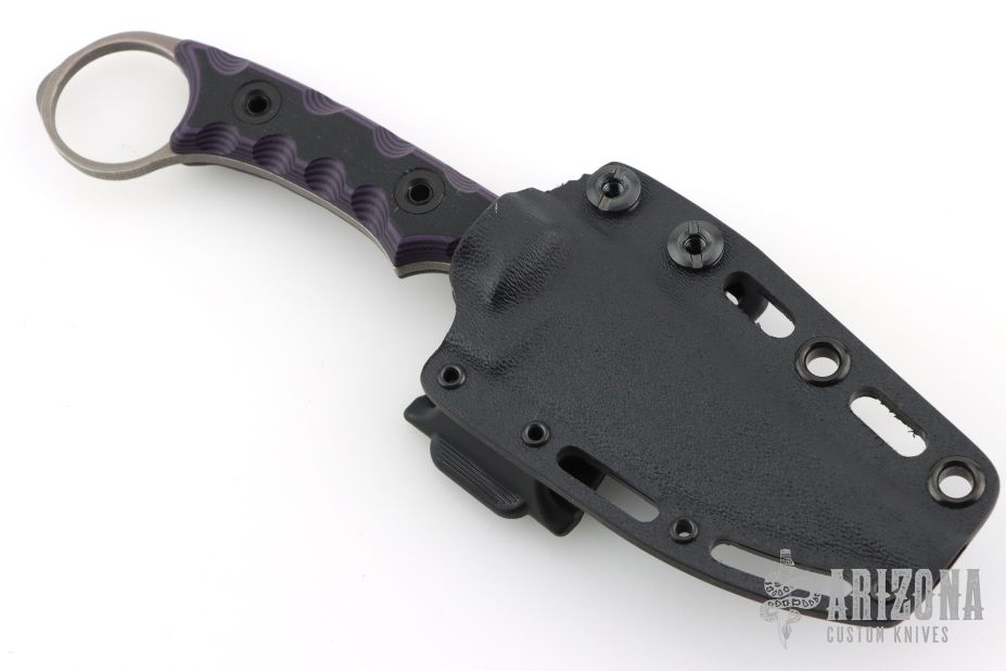 New for 2021 is based on our Nightshade handle platform has a .125″ thick blade heat treated in house to our exacting standards. Our dual temper and careful process’ make this blade indestructible backed by our life of the knife guarantee. The Nightstalker has been carefully thought out and designed to provide you ultimate usability and comfort. The grip with integral finger ring is designed to be comfortable in all carry positions, tip up, tip down with our without you finger in the ring. The Nightstalker becomes part of your hand, prevents dropping or being disarmed with the finger ring that features a temple spike/glass breaker. Further locking you onto your knife the blade has an integral thumb rest built into the Mako style fighter blade, features a full blade length swedge to increase cutting and piercing ability. The Nightstalker is supremely comfortable, fast, balanced to feel light but built to take on anything or anyone. Plated in Nickle Boron the Nickle Boron (NiB) is indestructible and backed by a lifetime warranty with our famous “Life Of The Knife” guarantee the sheath is easily concealable and can be worn necklace carry as well.