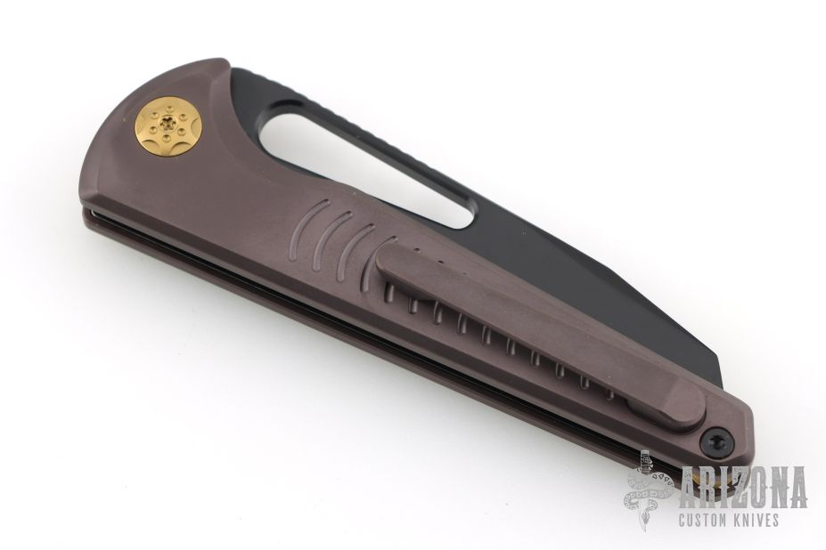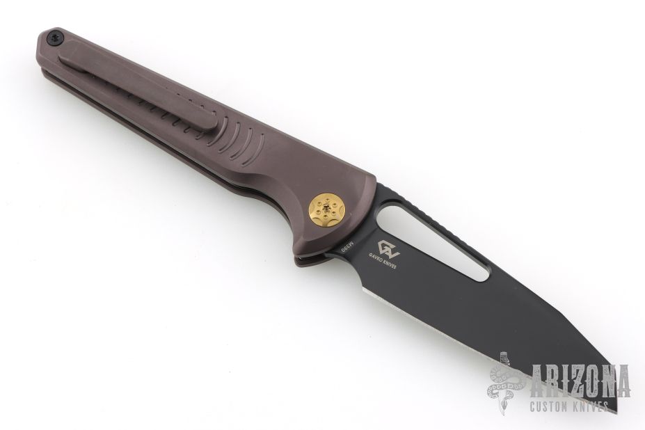 The Gavko Leopard draws inspiration from the leopard shark, known for its striking and distinctive pattern. This medium-sized knife features a slender profile that seamlessly merges elegance with functionality. The combination of a 3.38"" reverse tanto M390 blade and slim titanium handle creates a sleek yet commanding presence, making the knife appear and feel larger than it is.