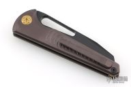 Designed for strength and smooth operation, the Gavko Leopard utilizes a Top Liner Lock mechanism. The lock bar is securely hidden within the titanium handle when the knife is closed, offering a clean, minimalist look. The thumbhole opening, paired with a ceramic ball-bearing system, ensures smooth, ambidextrous deployment. Additionally, the shape of the thumbhole adds a distinctive touch to the knife's overall aesthetics.