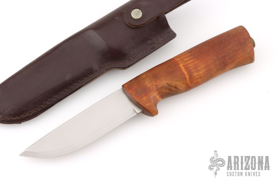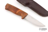 Eggen has a beautiful handle, crafted out of one piece of selected curly birch, sanded and polished to a satin finish. The well-shaped handle finishes off towards the blade with a well-proportioned finger guard for safety.