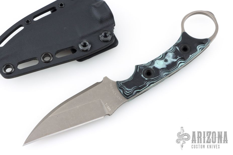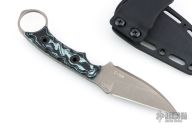 We used a wharncliffe style dead flat edge to maximize every cut. I selected our famed ‘Night’ series grip that gives you the ultimate fighters grip. It’s slim design is textured and contoured to become part of your hand. The ring placement can’t be felt when making a natural clinched fist, this allows you to make a tight fist around the grips while maintaining your hands natural knuckle alignment.