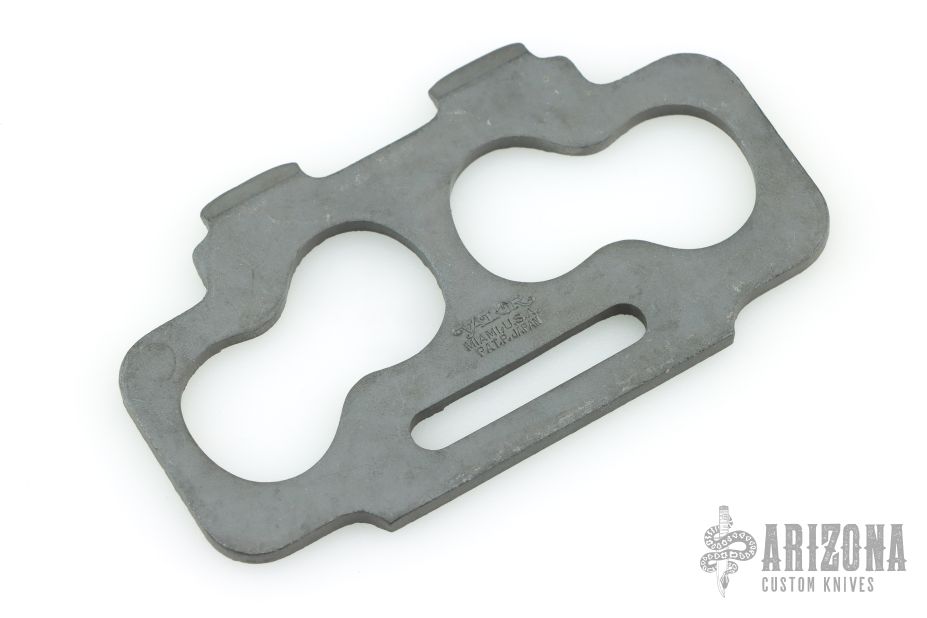 Knuckle by Valor. Black steel knuckle, .159" thick. Has scuffs throughout, otherwise good condition for its age.