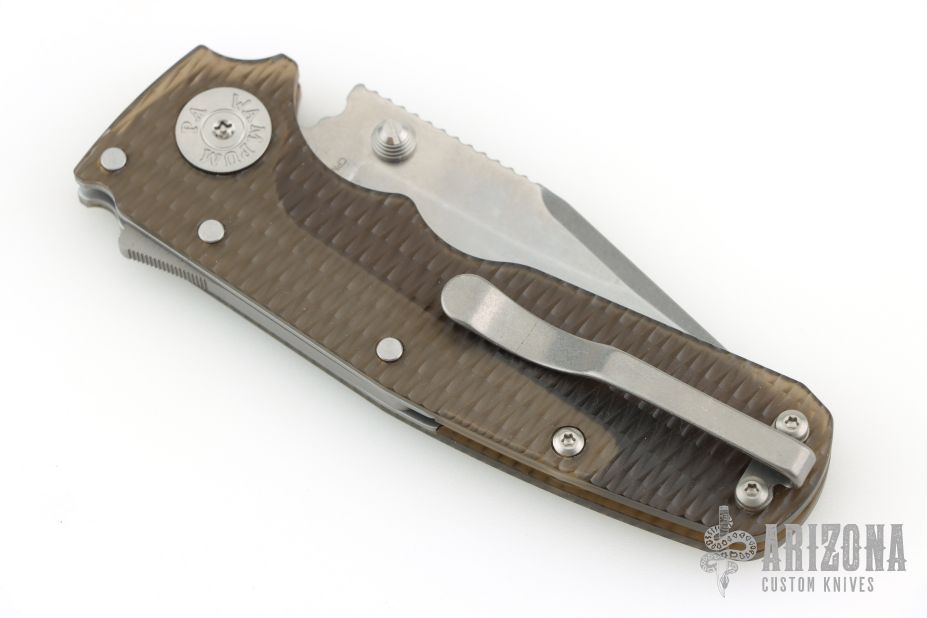 This Blade HQ exclusive Shark Cub from Demko Knives has exclusive smoke Ultem scales. Not only do these scales contrast nicely with the blade to bring a rich and distinct look to the knife, but they make for a highly durable handle!