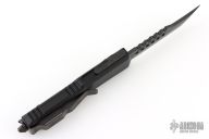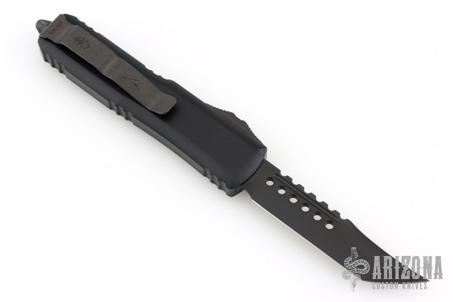 This UTX-85 by Microtech features a shadow DLC finished blade with a standard edge. The handle has a black aluminum frame, black stainless steel tip down clip and hardware. S/N 039 Dated 10/2022. Comes with original box and papers. Excellent condition.