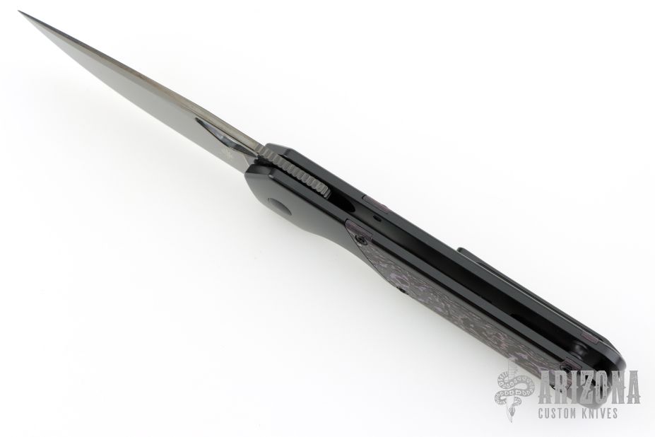 - Handle: Elegant black titanium handle with Purple Haze Fatcarbon inlays.