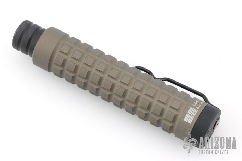 The grid-patterned handle features slightly sharp edges from machining, serving as a grip enhancement for use with gloves to prevent slippage. Even when used barehanded, it provides a strong, secure grip. This makes it an excellent choice not only for its tactical appearance but also for its practical functionality.