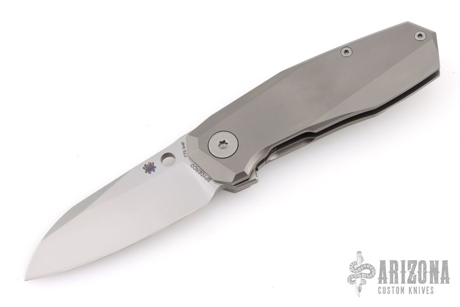 This Techno 3 from Spyderco features a satin finish blade with thumb hole and flipper tab. The handle features bead blast finished titanium, backstrap, tip up clip, and lockface insert/over travel stop. Comes with original box and papers. Excellent condition.