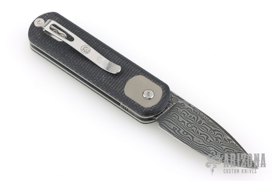 The Corgi pup features a 2.37'' Damascus modified drop point Damascus blade with a flat grind. The layered pattern of Damascus steel adds a visually striking element to the Corgi pup. The blade holds a sharp edge well, making it effective for a variety of cutting tasks.