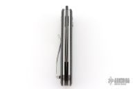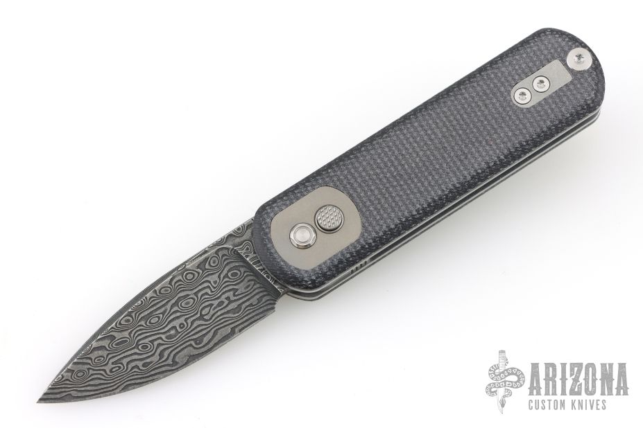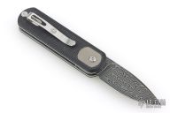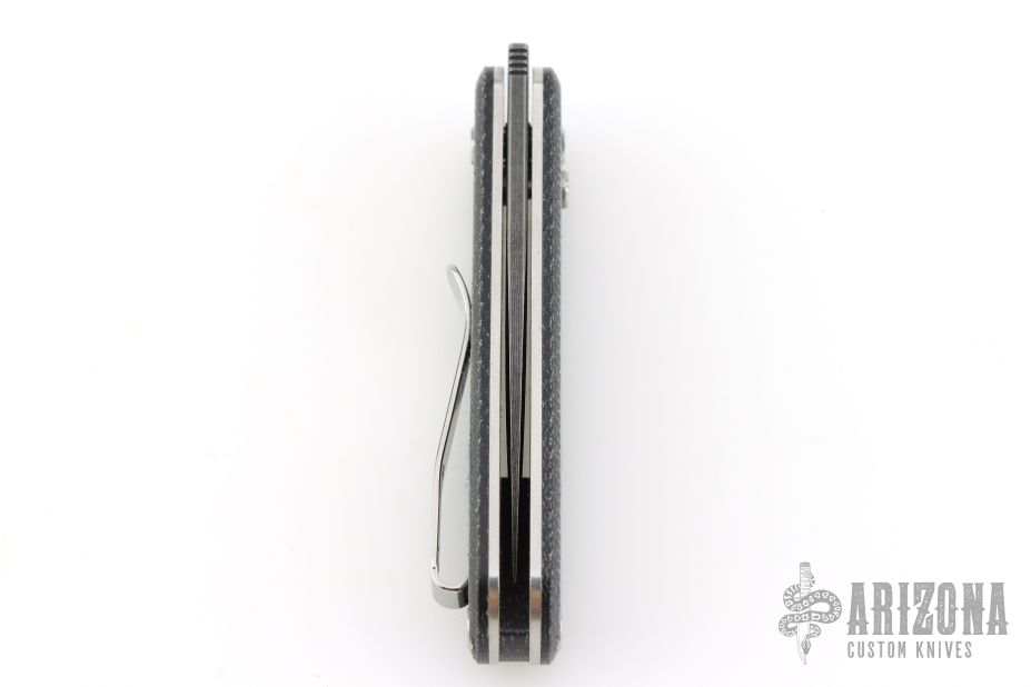 The recessed textured button increases control over the action of the knife. The color-matched backspacer has a lanyard attachment and adds paring aesthetics.