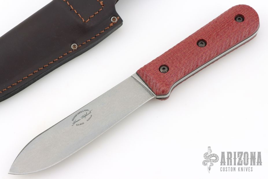 There is enough length to do big jobs, but the blade is still nimble and eager to move. Roughly 5/32" thick at the widest point, the unique grind makes the knife seem thinner in use, more like an 1/8" blade. It is a terrific slicer and works well for virtually any task imaginable. A slight swedge at the spine makes the blade more efficient by reducing drag when cutting through soft or fibrous materials such as vines or large game.