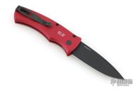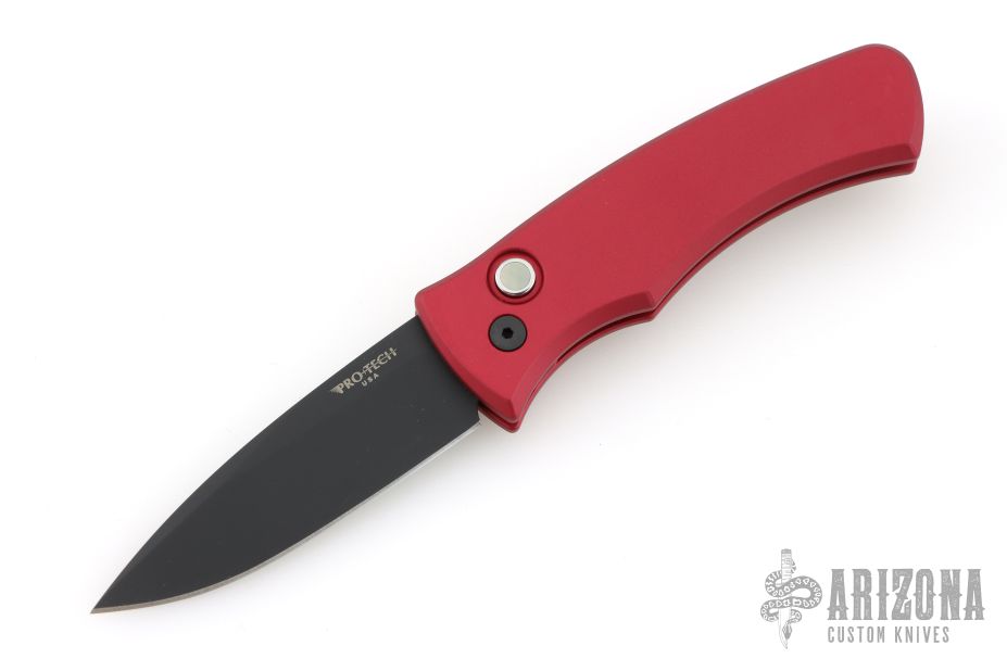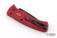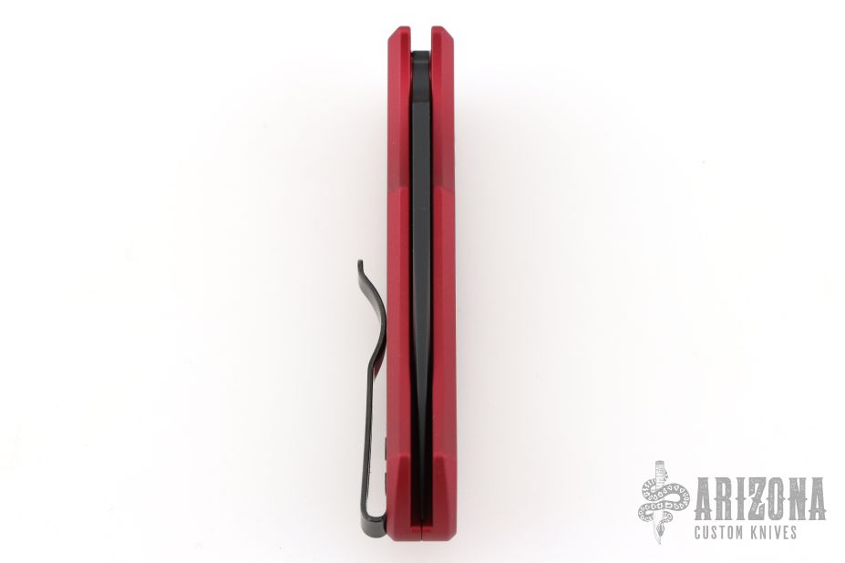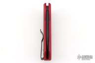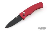 This Duke 2 by Pro-Tech has a DLC finished blade. The handle has a red aluminum frame, mother-of-pearl push button, tip up black titanium clip with black screws and hardware. Comes with original box and papers. #30/100. Excellent condition.