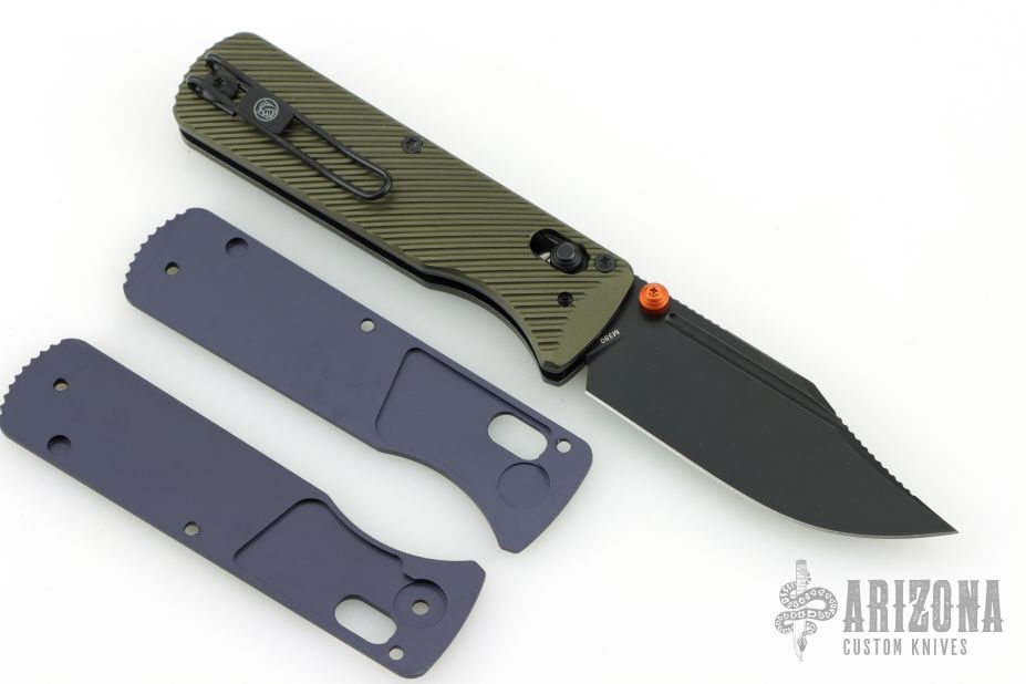 The Vombat features a crossbar lock mechanism with a quick-swap scale system. Simply unscrew the scale screws, and you're ready to swap in new scales!