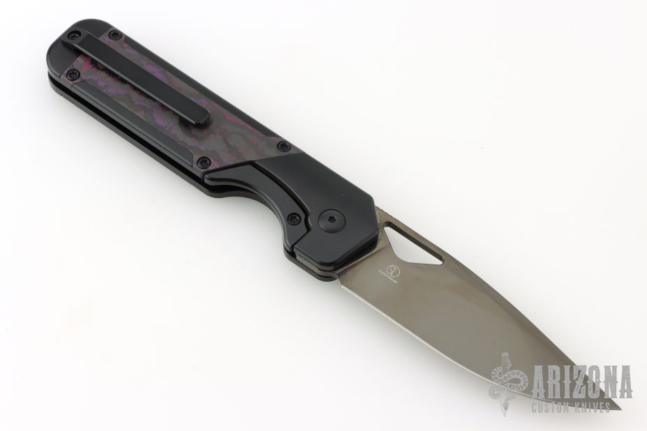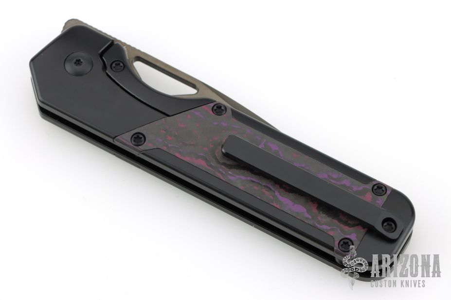 - Handle: Elegant black titanium handle with Purple Haze Fatcarbon inlays.
