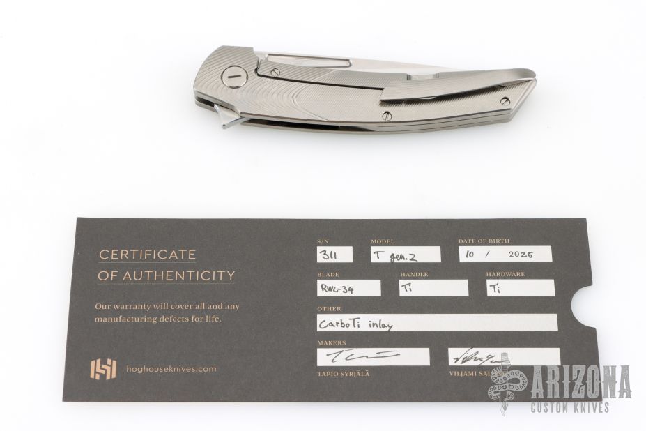 We had a dream for a long time to start making folding knives together. In late 2021 we finally found an affordable CNC machine for sale. It was old, year 1998 Haas VF-2, but we got it in pretty perfect and nearly unused condition. Soon the deal was done and the machine was on its way to our first location which happened to be an old piggery. That is where our name, Hog House Knives comes from. Either one of us knew how to operate cnc machines, or how to use cam software. Through trial and error we managed to figure it all out. Our goal is to make high quality custom knives. We make everything our self, except M2.5 screws. In mid September 2022 we found a new place for the shop and moved out from the old piggery. We hope that you have a great time with our knives.
