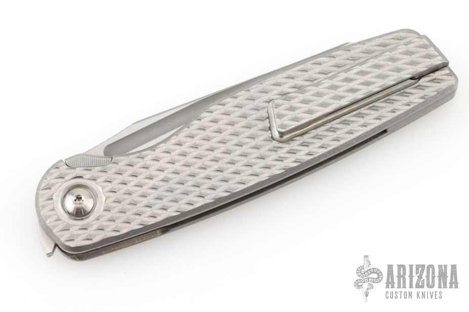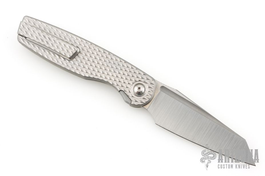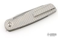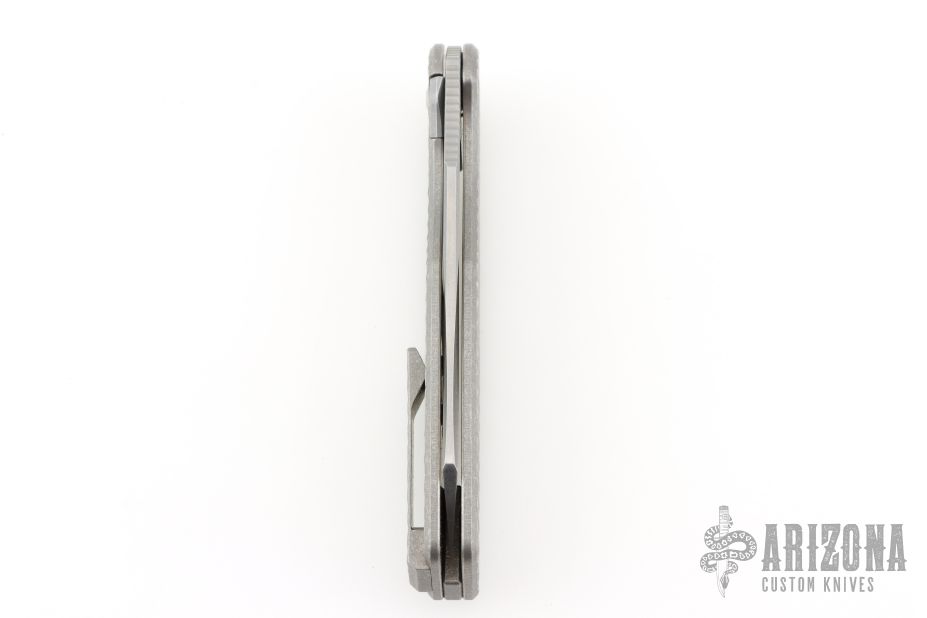 This Cortex XL by Brown Knives features a clip point stonewashed finish blade with fullers, notched thumbrest and front flipper. The handle has a milled titanium frame with stonewashed backspacer and milled tip up clip with hidden screws. Has over travel stop. Rides on bearings, nice detent, lockup and blade seating. Comes with original box and COA #078. Excellent condition.