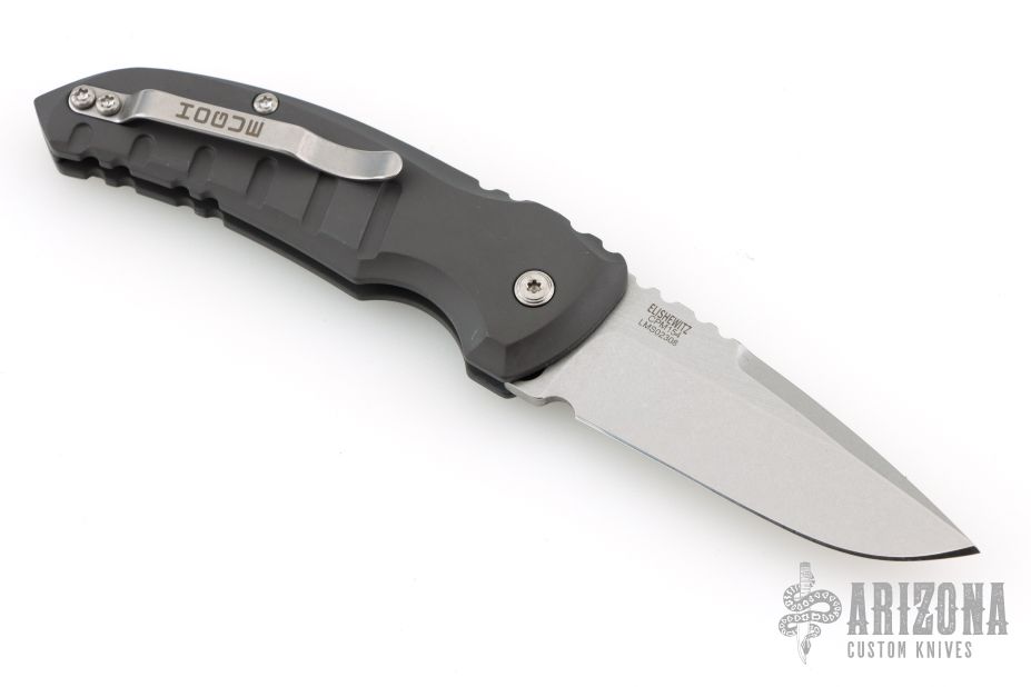 - Stonewashed Drop Point blade made from CPM 154 stainless steel.