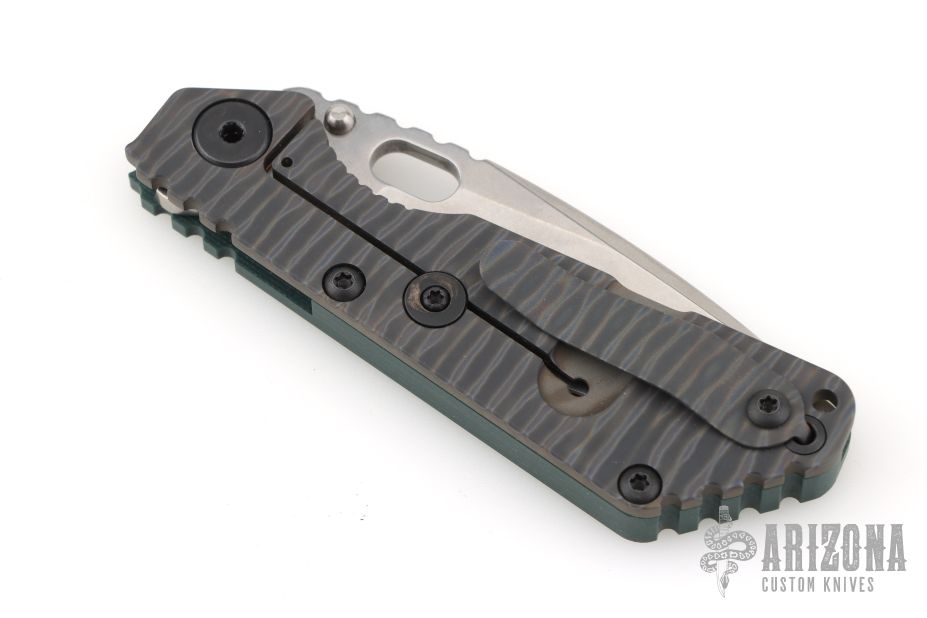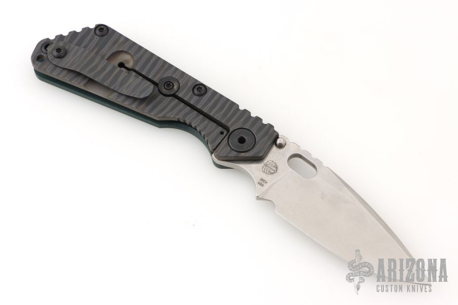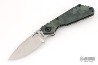 This SNG framelock folder by Mick Strider features a drop point blade and a Camo G10 and flamed titanium frame and tip up titanium clip. Includes Hinderer "Lock Bar Stabilizer" for maximum reverse lock retention. Nice detent, lockup and blade seating. Comes in original DragonCut pouch. Excellent condition.