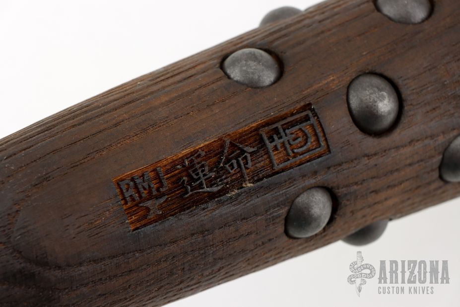 Tetsubo War Club by Ryan Johnson. Gold Point Forge, full hickory construction, hand inlaid rivets. Heavy and 3.125" in diameter. New condition.