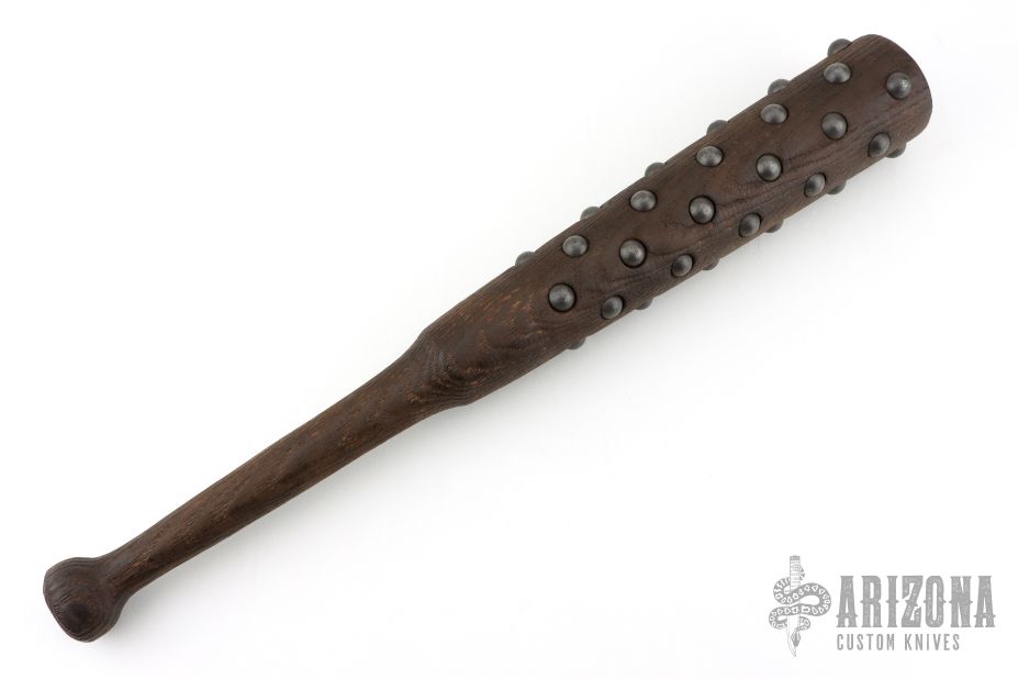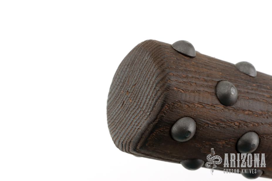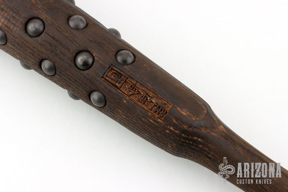 Tetsubo War Club by Ryan Johnson. Gold Point Forge, full hickory construction, hand inlaid rivets. Heavy and 3.125" in diameter. Comes in a Tube. New condition.