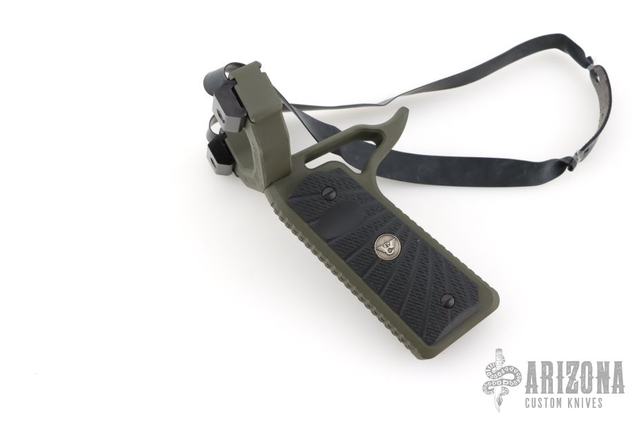 Built with a classic 1911-style beavertail, this slingshot delivers a familiar, ergonomic feel with enhanced control under tension. The Wilson Combat black G10 grips provide a secure, non-slip hold for precision and comfort during extended use. Equipped with the SimpleShot FlipClip X system, band changes are fast, secure, and hassle-free—keeping you shooting instead of adjusting. Its rugged construction offers a powerful balance of strength and control, paired with high-performance flat bands for consistent energy transfer. Includes FlipClip X hardware.