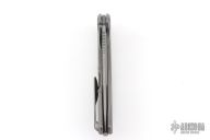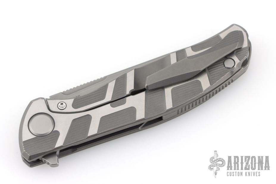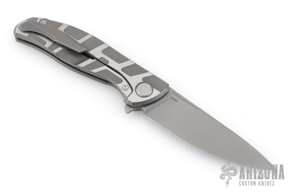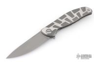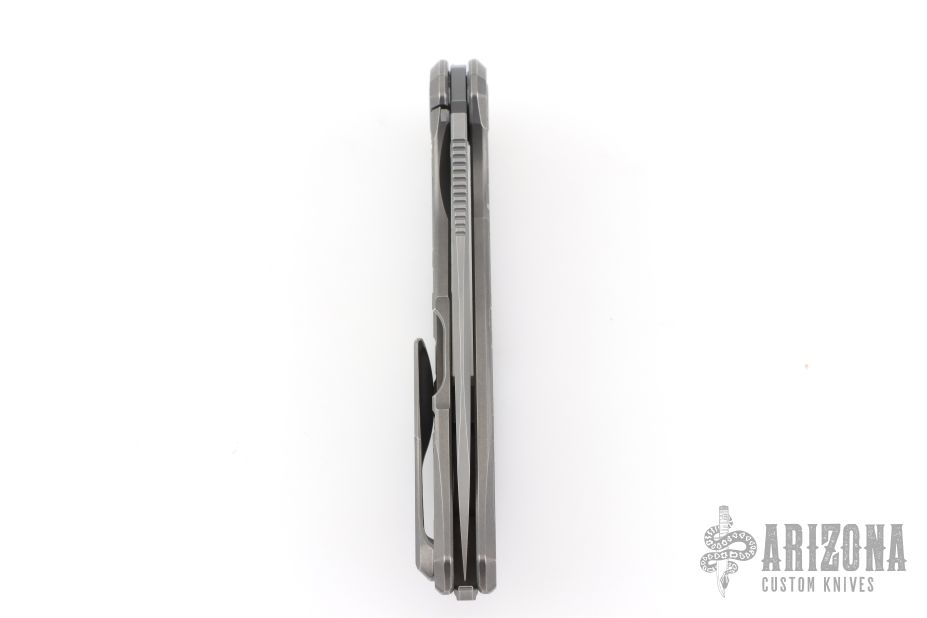This F95T by Shirogorov Knives features a stonewashed blade with a notched thumbrest and flipper. The handle has a two-tone milled titanium frame with matching titanium backspacer and tip up clip. Nice detent, lockup and blade seating. Has MRBS. Comes with original box, cloth, and COA. New condition.