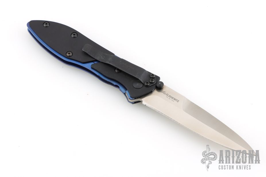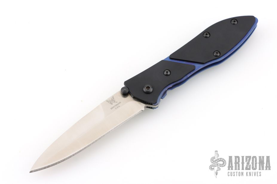 Benchmade 875S Elishewitz Sentinel. Has a satin finished spear point blade. Anodized titanium frame with 2 piece black aluminum scales. Black stainless steel clip for tip down carry. Comes with original box and papers. Has a couple light scuffs and scratches on the body and clip. Excellent condition otherwise.