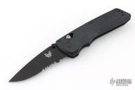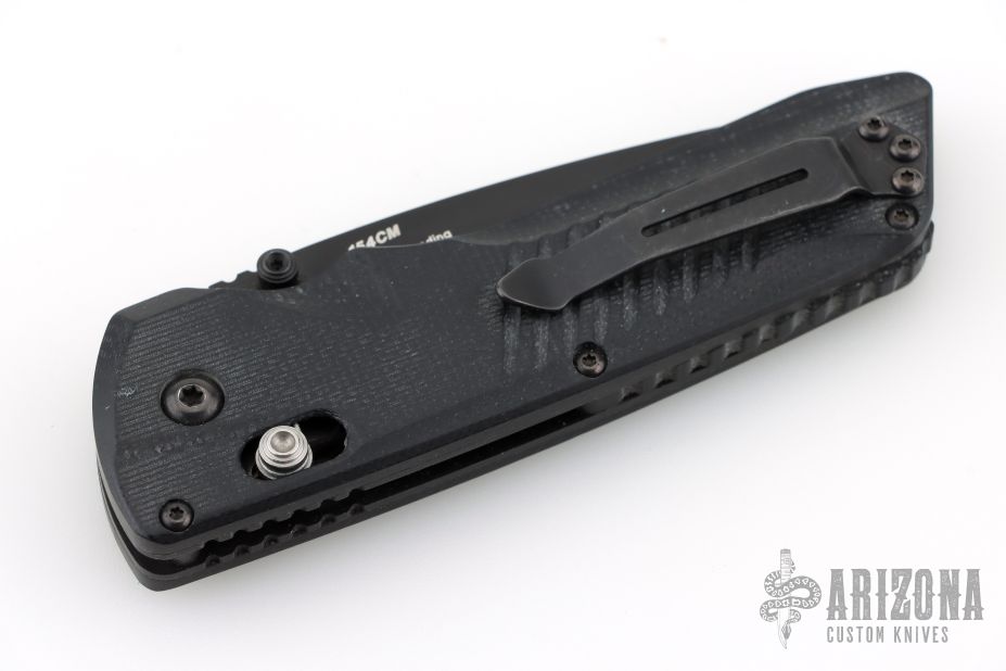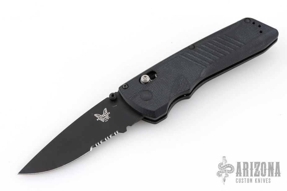 This Serum dual action folder from Benchmade features a black blade and milled black G-10 scales, stainless steel liners and tip up clip that can be positioned for right or left hand carry. Includes original packaging and paperwork. Excellent condition.