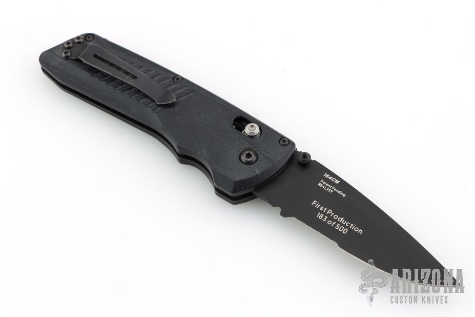 Comes with the wrong BM box(580SBK) pouch, and papers. This one is marked FPR#183/500. Has some light scuffs and scratches, otherwise excellent condition.