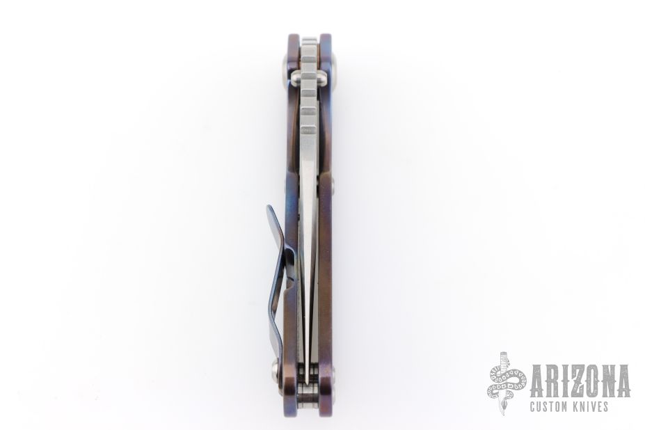 His knife line grew over the following years to include different varieties of fixed blades, all distinctive and many with specialized uses. But constant in all of them was a disregard for convention, and a desire to try new ideas. An example of this was the Ajax – it featured a very wide blade surface clearly designed to inflict damage. It drew on the weapons carried by Roman legionnaires, yet was modern and usable in the 21stCentury battlefield. Mick also worked on his technical skills, always striving to become better at the physical craft. At the 2002 Blade Show, a group of the best tactical knifemakers in the country decided to compete with each other to produce the most innovative and interesting fixed “battle blade” at the show. Mick’s entry, an incredible integral knife made out of ½” titanium stock with a zippered composite blade, gorgeous handles, and integral guard was the unanimous winner, and effectively retired the competition.