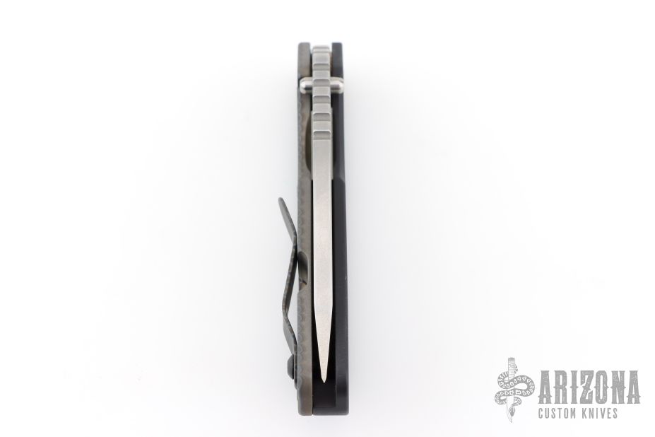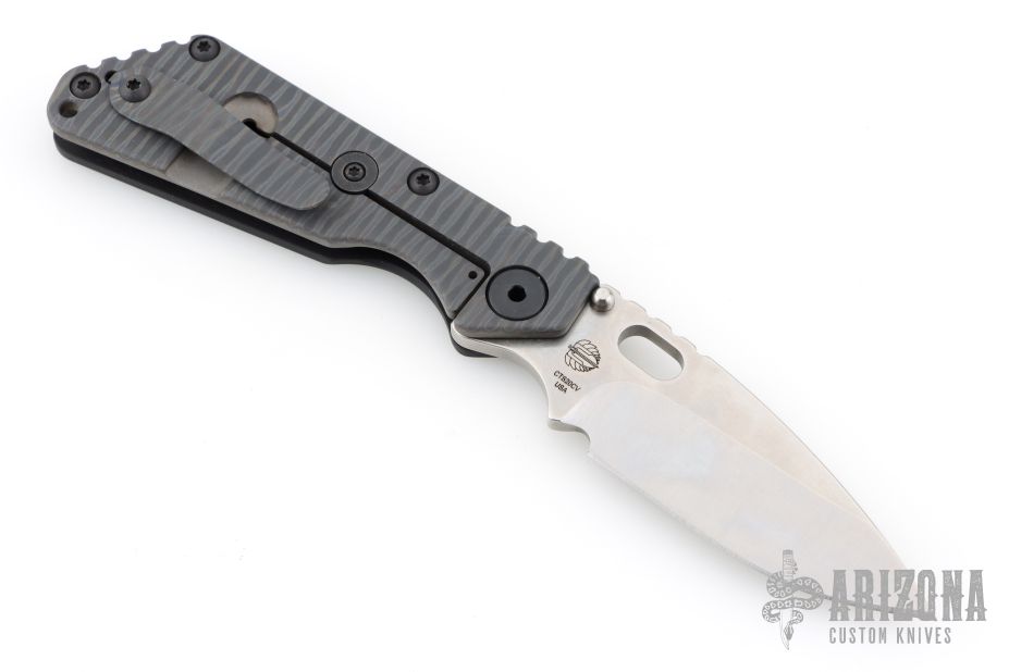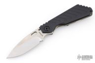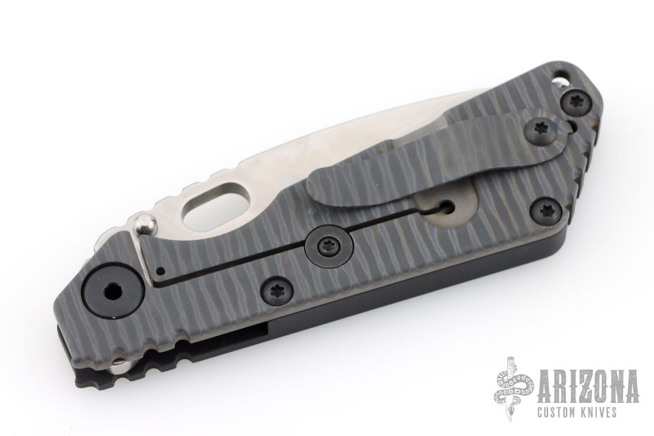 This SNG framelock folder by Mick Strider features a stonewashed drop point blade and a black aluminum and flamed titanium frame and tip up titanium clip. Includes Hinderer "Lock Bar Stabilizer" for maximum reverse lock retention. Nice detent, lockup and blade seating. Excellent condition.
