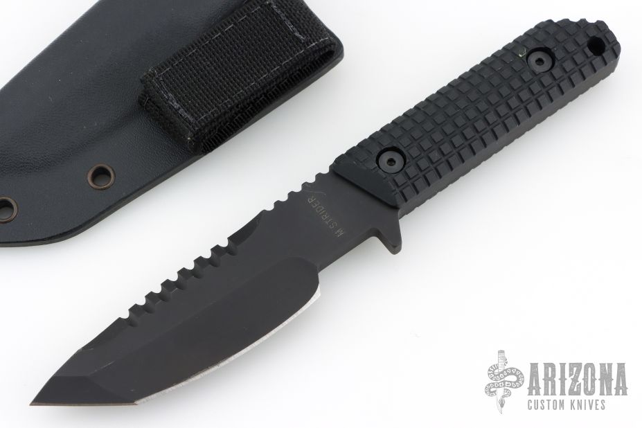 Strider Knives is a privately owned and operated company devoted solely to the development and construction of edged tools designed to survive use in the harshest of conditions. The company was founded and is currently operated by former military personnel. The initial goal was to provide a field service knife constructed with the finest components available, yet affordable to the average enlisted man and within his maintenance abilities. The initial goal having been met, Strider Knives found a ready market for custom-edged weapons and tools with the same component quality requirements as the first highly successful field knives. Many of Striders available edged tools are drawn from customer's specific design requirements. Others are simply the company's ability to look at a potential work environment and design a prototype to be tested and assessed by the workers of that environment. The background of Strider Knives founders enables the company to assess requirements in diverse fields ranging from the average line soldier/marine through special operations, law enforcement and hunting to commercial diving. Various Strider designs have met and exceeded the requirements in each of these fields.