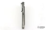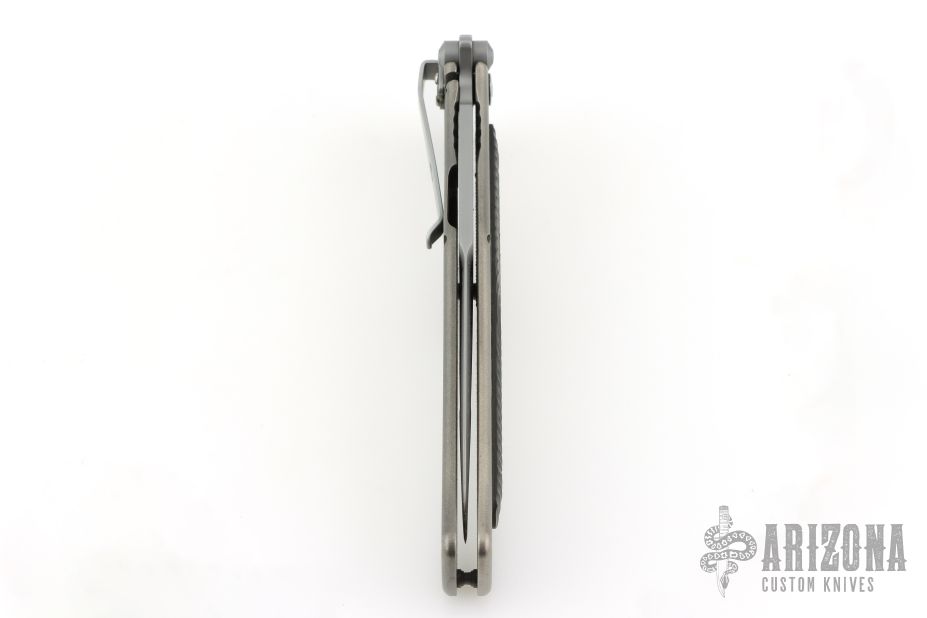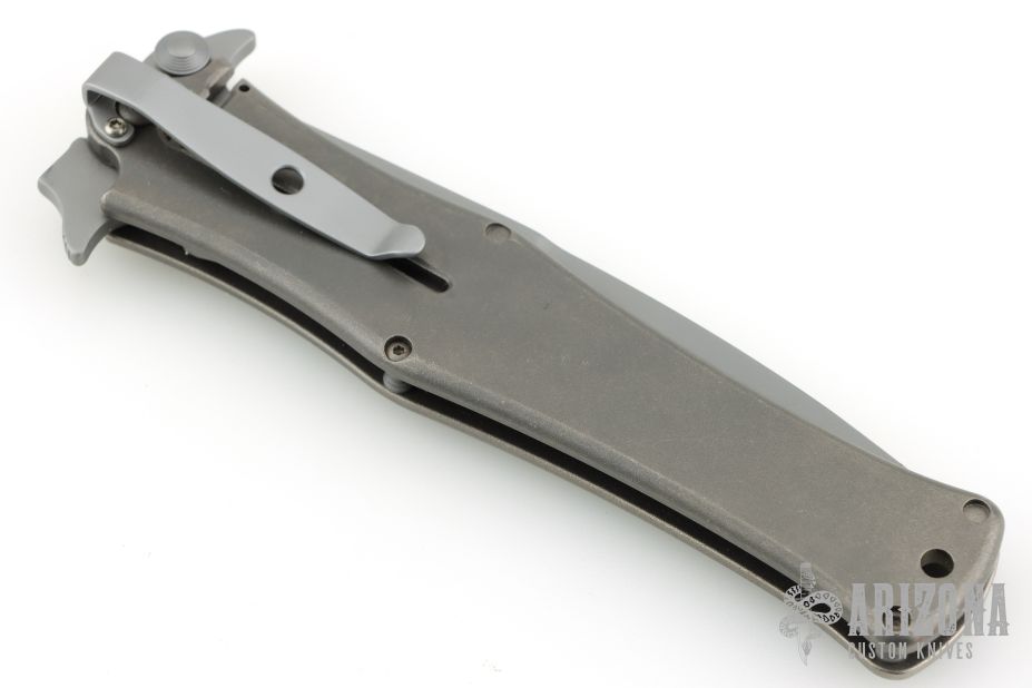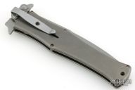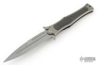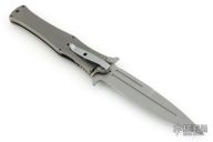 This assisted opening HTM (Hand Tech Made) Madd Maxx features a bayonet style bead blast finished blade with the top edge only sharpened at the point, and a bead blast finished titanium frame with a 3D machined carbon fiber scale on one side. Bead blasted stainless steel clip. Strong and fast opening. Comes with original zipper case. Has a couple light marks, otherwise Excellent condition.