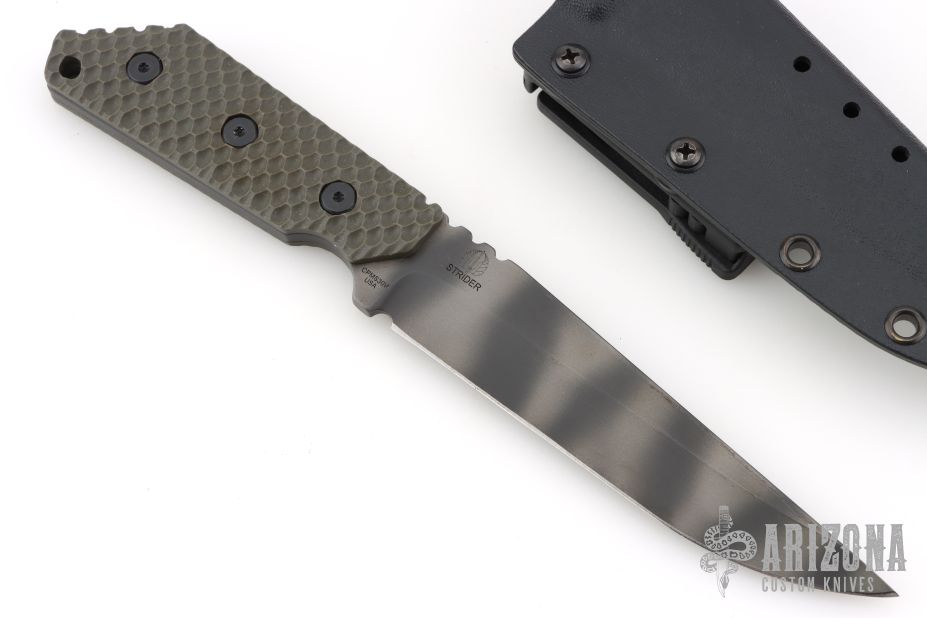 Strider Knives is a privately owned and operated company devoted solely to the development and construction of edged tools designed to survive use in the harshest of conditions. The company was founded and is currently operated by former military personnel. The initial goal was to provide a field service knife constructed with the finest components available, yet affordable to the average enlisted man and within his maintenance abilities. The initial goal having been met, Strider Knives found a ready market for custom-edged weapons and tools with the same component quality requirements as the first highly successful field knives. Many of Striders available edged tools are drawn from customer's specific design requirements. Others are simply the company's ability to look at a potential work environment and design a prototype to be tested and assessed by the workers of that environment. The background of Strider Knives founders enables the company to assess requirements in diverse fields ranging from the average line soldier/marine through special operations, law enforcement and hunting to commercial diving. Various Strider designs have met and exceeded the requirements in each of these fields.