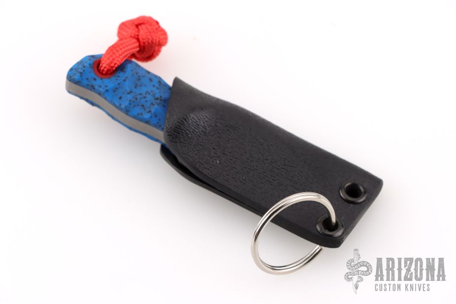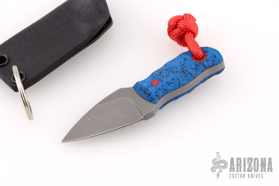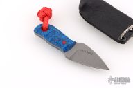 This Pocket Lint by Auxiliary Manufacturing features an acid-tumbled drop point blade with .167" blade stock and .775" blade depth. The handle has blue grip-x scales. Comes with original box, and a kydex sheath with split ring. New from maker!