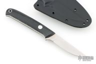 This K-20 Canoe by Dozier Knives features a satin finished blade, .126" blade stock and .687" blade depth, full tang construction. The handle has black linen micarta scales with aluminum pin and lanyard hole. Comes with kydex sheath. New from maker.