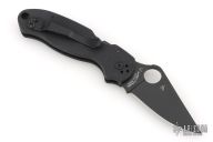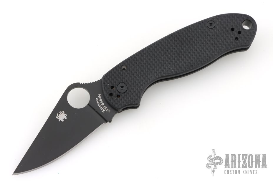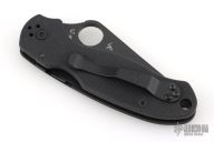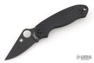 This Paramilitary 3 Linerlock Folder from Spyderco has a black finished clip point blade with thumbhole and notched thumb rest. Handle has black G-10 scales with nested stainless steel liners and black stainless steel 4-way reversible clip. Comes with original box and papers. Excellent condition.