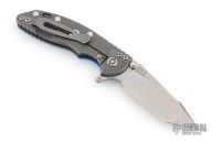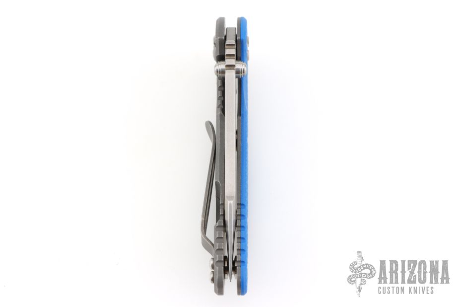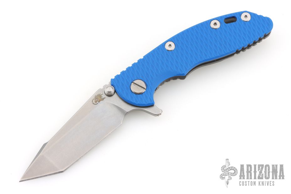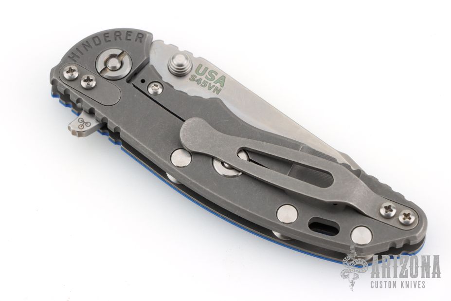 This Harpoon Tanto from Hinderer Knives features a 3" stonewash finished harpoon tanto shaped blade, textured blue G-10 scale and a working finished titanium frame, clip, and satin hardware. Clip can be mounted for tip up or down carry. Nice lockup, seating, and detent. Comes with original box, card and extra washers. Excellent Condition.