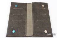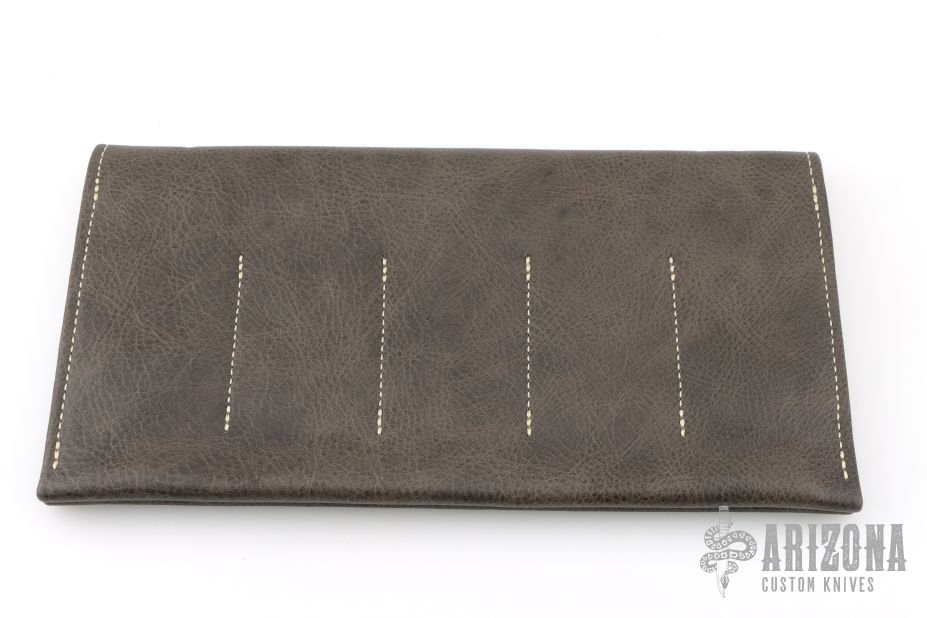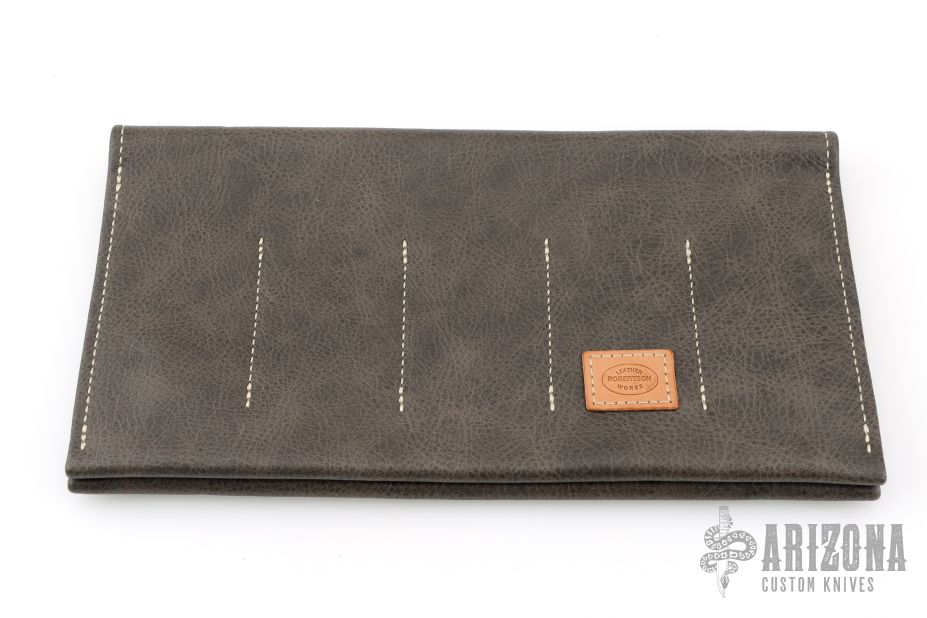 This 10-Knife Case by Robertson Leather Works is made from Slate Gray Leather. It has two magnetic snaps. The pockets are 5" by 2.125". New from maker!