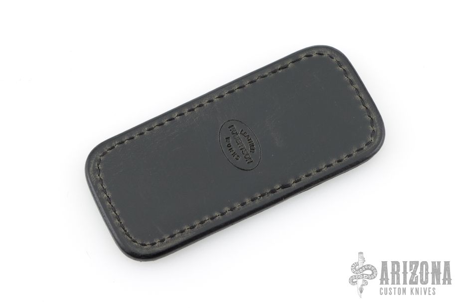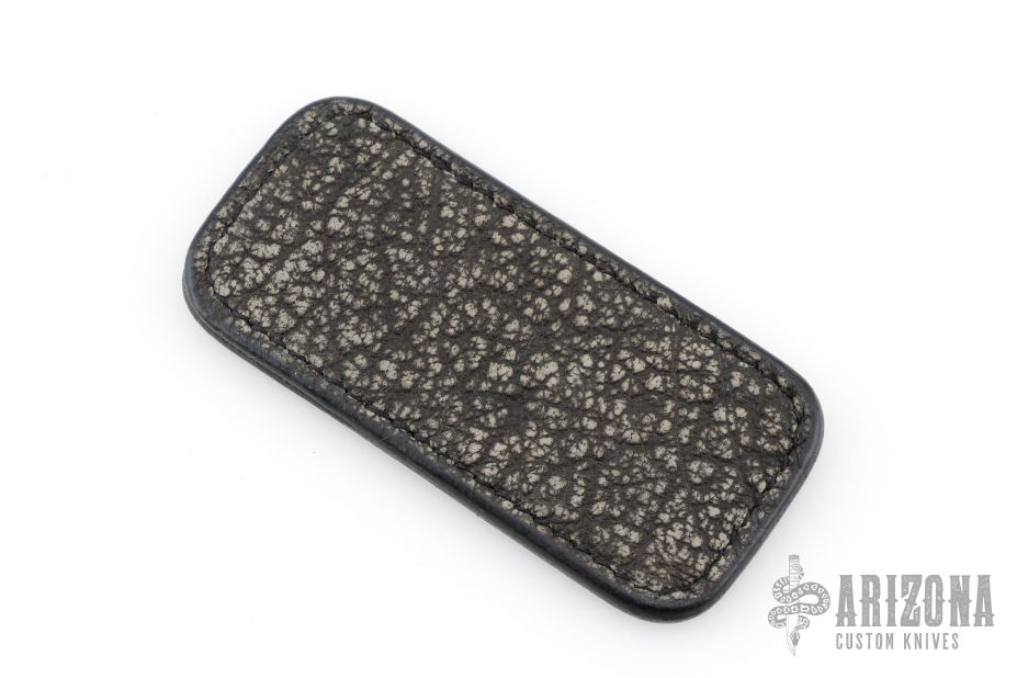 This leather slip sheath by Robertson Leather Works features Gray Cape Buffalo and black leather. It is 4.25" long by 2" wide. New from maker!