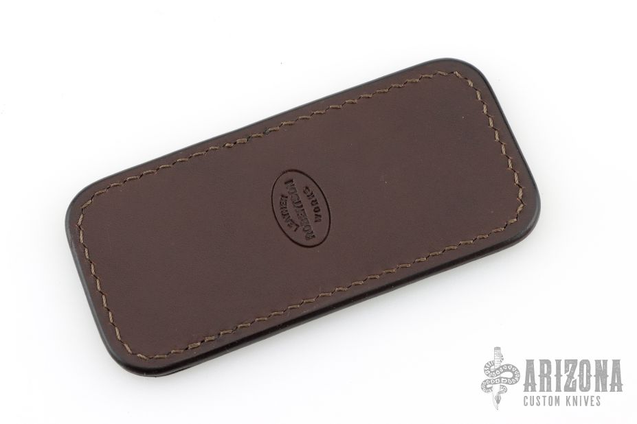 This leather slip sheath by Robertson Leather Works features Brown Cape Buffalo and brown leather. It is 4.5" long by 2.125" wide. New from maker!