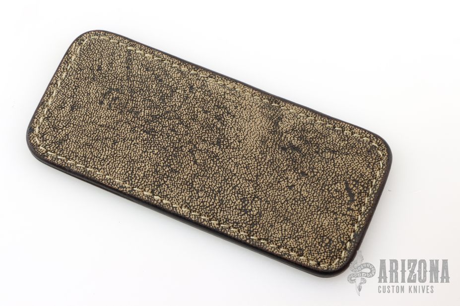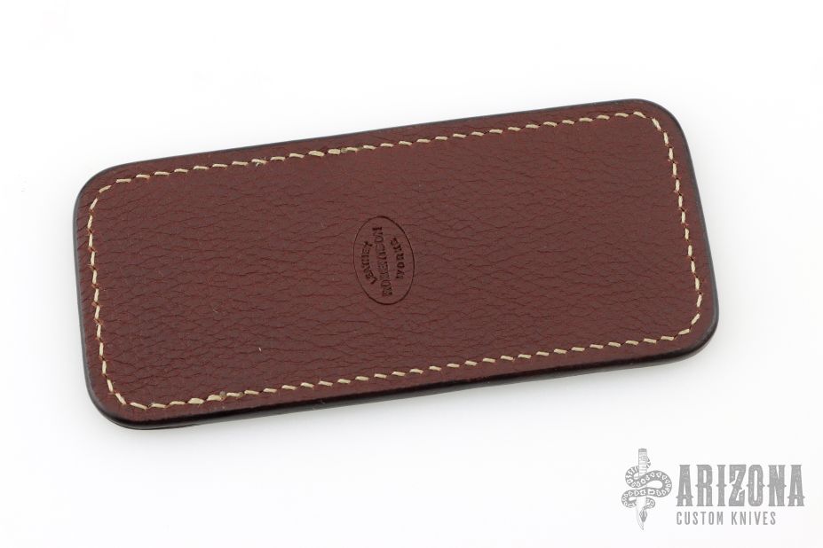 This leather slip sheath by Robertson Leather Works features Antique Wildebeest and saddle leather. It is 5.5" long by 2.5" wide. New from maker!