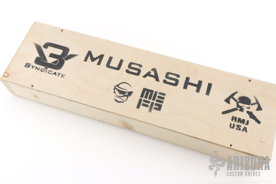 Each 3V Syndicate Musashi comes with a sheath, wooden box, sealed introduction letter to the 3V Syndicate complete with coin and patch.