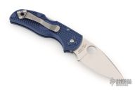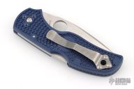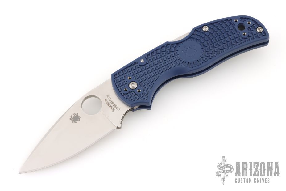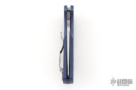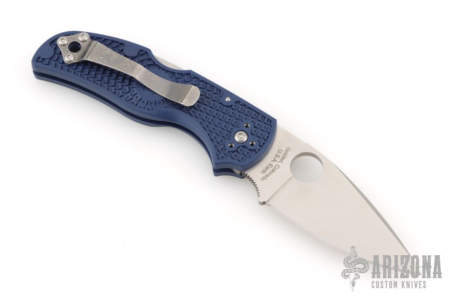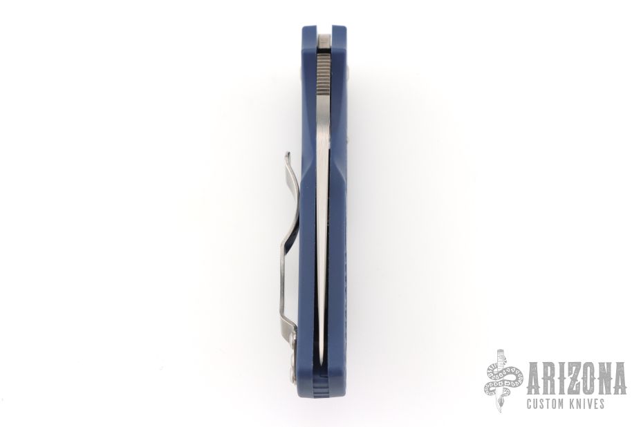 This Native 5 has a lightweight blue FRN handle and a full-flat ground SPY27 steel blade. The handle on the Native is patterned with two separate finger choils. The first choil, where the blade and handle meet, allow positioning the index finger closer to the knife's sharpened edge for control over the cutting surface. Behind the first choil, the second positions the hand farther back on the folder for dexterous cutting while pushing the blade away from you. Bi-Directional Texturing molded into the FRN handle form varying levels of steps minimizing forward or backward sliding. 4-way reversible pocket clip for ambidextrous carry.