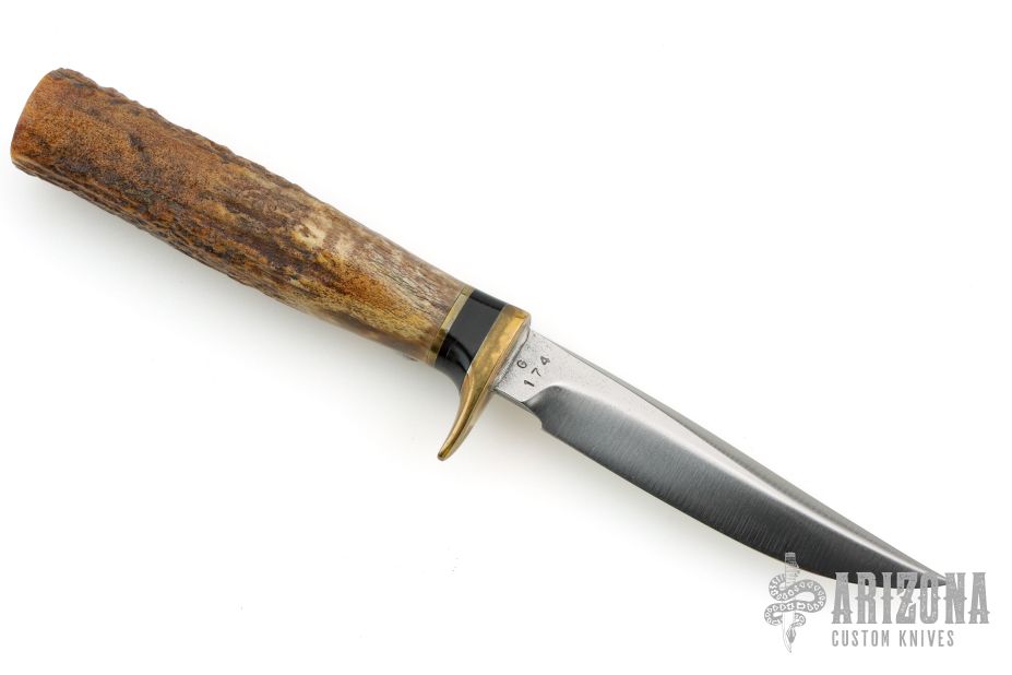 Ralph Bone made high quality handmade fighting and sportsman's knives in Lubbock, Texas from 1964 to 1970. Bone was best known as a custom knife maker, for the first one half of his life and later, as a custom gun maker and highly innovative master engraver, which he pursued until his death. Actually, Ralph Bone made his first knife when he was nine years old. He produced knives, thereafter, until he died. Enedino De Leon joined the company in 1969, as a Marine Corp veteran. Bone taught De Leon to make knives and conveyed to me, late in his life, that De Leon was his favorite knife maker.