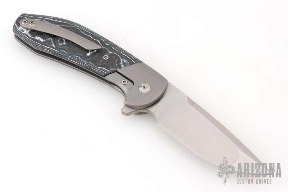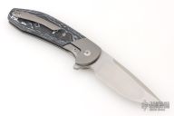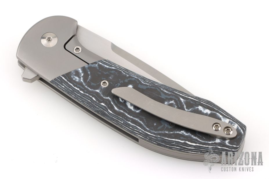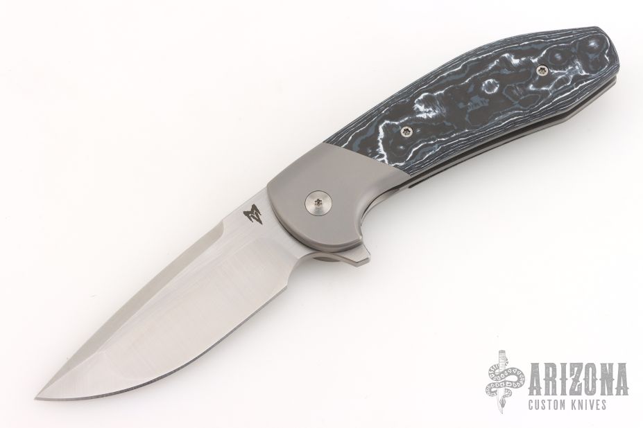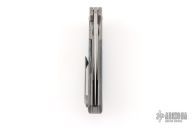 This VBR by Reate is a Mark Varga design, it features a satin finished blade with flipper. The handle has a bead blast finished titanium frame with carbon fiber scales, black tumbled titanium backspacer and tip up clip. Rides on ceramic bearings. Comes with original box and papers. Excellent condition.