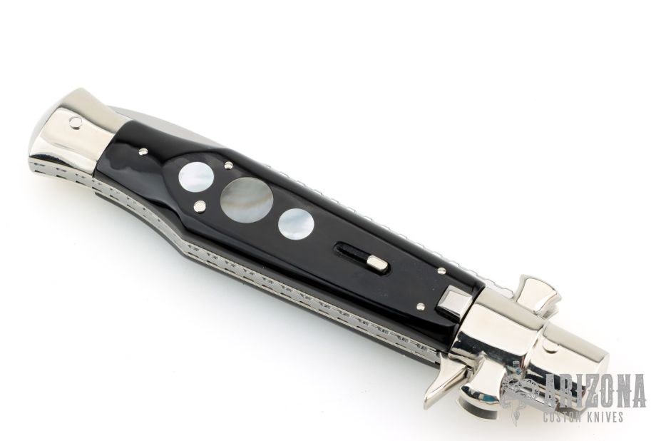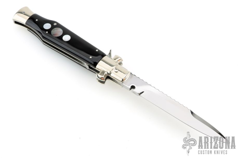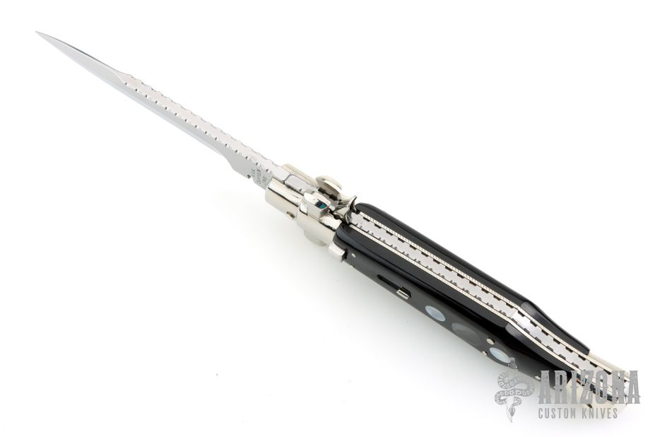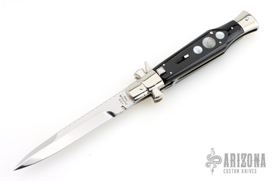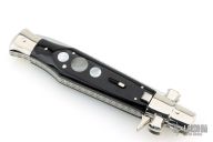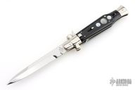 Angelo Campolin Sr. was born in 1923 in Maniago, Italy. He worked on perfecting his knife making skills before WWII and at this time made his first switchblades. After the war, in 1947 he started his company and made 30 stilettos with the marking “Angelo Campolin”. In the 1970’s Angelo’s son Gianni started to work in the company and they were specializing in folding hunting knives and also manual folding stilettos for the Robert Klaas company in Solingen Germany with their Kissing Cranes mark. In 2002 American switchblade collectors Dan Fuller, Brad West, and Tim Zinser were visiting Maniago and enjoying a few glasses of wine in a bar with Angelo Jr. and Gianni. The discussion was about a new name for some knife projects they wanted to pursue. It was Brad West that suggested the tang stamp should be AGA, for Angelo, Gianni, Angelo, thus representing three generations in the knife making business. The Campolins liked it and it stuck. In the beginning it was just a few items, but grew to the point where now there are 12 models and different scale options. The goal has been to offer quality switchblades using the old methods and traditions. Being a collector himself, Angelo Jr. knows what others like. The company headquarters has moved to Austria with production still in the original Maniago shop, as well as the others in Maniago that produce the knives for A.G.A. Campolin.