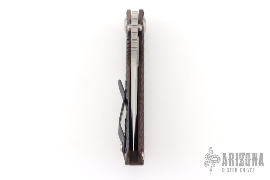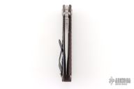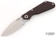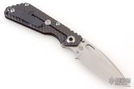 This SNG DGG by Strider has a stonewashed finished blade with dual thumb studs, thumb hole, and notched thumb rest. Handle is Black Cherry G-10 and bead blast and anodized titanium "Gunner Grip", lockbar stabilizer, and titanium tip up clip. Nice detent, lockup and blade seating. Excellent condition.