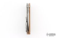 In 1988, he began making specialized knives for use by the military. This turned out to be fortunate turn of events, both for Mick and for the knife using world at large. Mick’s approach was to not get burdened by the weight of past designs. He started with a tabula rasa, a clean slate, informed only by his own experiences and knowledge of what a soldier needed in a knife. The knives he made didn’t look like the hunter-inspired knives seen in most PXs; instead they were almost brutish in their functionality: beefy, solid, and with unbreakable ¼” stock full tangs. These knives were the first indication of his innovative approach: in addition to their utilitarian design, the knives carried a subdued finish and subdued sheaths. No one carrying a Strider knife was going to be spotted because of sunlight glinting off of polished steel or a glossy leather sheath. Soldiers, policemen, and other men going into harm’s way couldn’t buy them fast enough. Mick sampled some good ideas, but made them great. For instance, he was not the first to wrap a knife handle with paracord, but he was the first to do it in a way that was tough enough for sustained infantry use. His knife line grew over the following years to include different varieties of fixed blades, all distinctive and many with specialized uses. But constant in all of them was a disregard for convention, and a desire to try new ideas. An example of this was the Ajax – it featured a very wide blade surface clearly designed to inflict damage. It drew on the weapons carried by Roman legionnaires, yet was modern and usable in the 21stCentury battlefield. Mick also worked on his technical skills, always striving to become better at the physical craft. At the 2002 Blade Show, a group of the best tactical knifemakers in the country decided to compete with each other to produce the most innovative and interesting fixed “battle blade” at the show. Mick’s entry, an incredible integral knife made out of ½” titanium stock with a zippered composite blade, gorgeous handles, and integral guard was the unanimous winner, and effectively retired the competition.